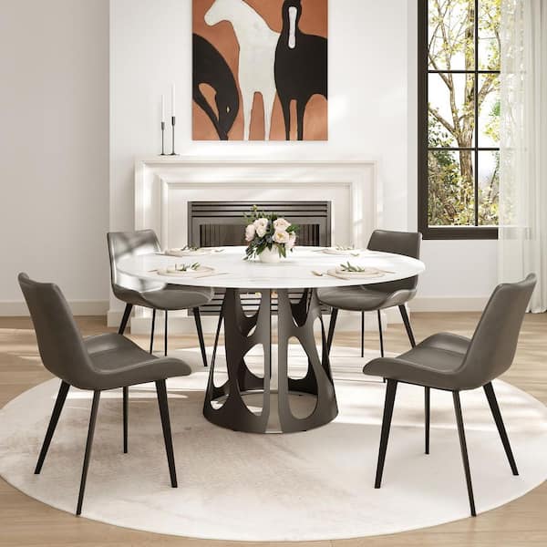 59 in. White Round Sintered Stone Tabletop with Black Metal Pedestal Base Dining Table (Seats 8)
