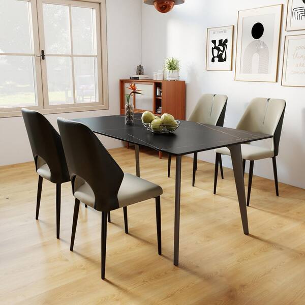 63 in. Black Sintered Stone with Gray Metal 4-Legs Dining Table (Seats-6)
