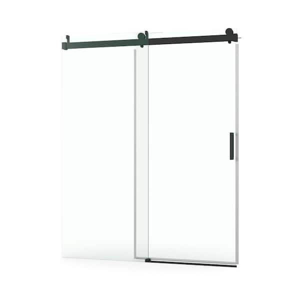 72 in. x 76 in. Sliding Frameless Soft Close Shower Door in Matte Black with 3/8 in. Clear Glass