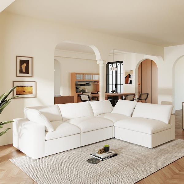 79 in. Modular White Linen Full Size 4-Seat Convertible Sleeper Sofa Bed with Washable Cover for Small Spaces