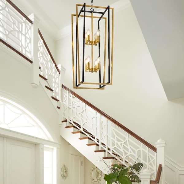 8 Light Modern Chandelier Semi Flush Black and Gold Ceiling Light Fixture for Dining Room Hallway Entryway Bedroom