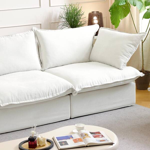 83 in. Flared Arm 2-Piece Overstuffed Linen Flannel Modular Deep Seat Sectional Sofa Cloud Couch in White