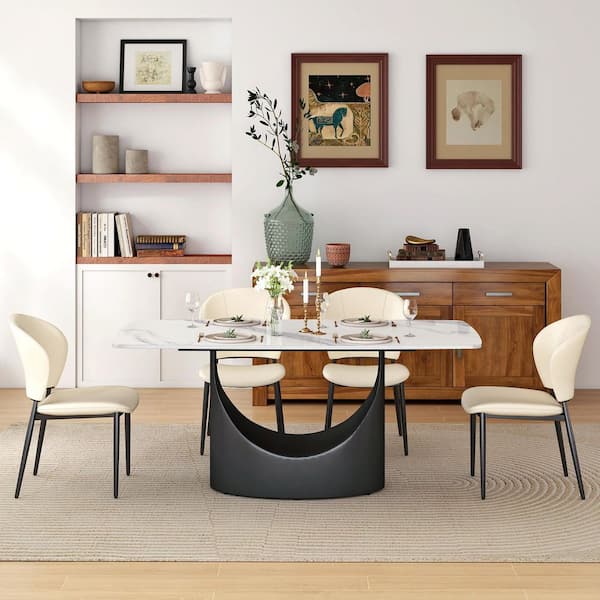 Beige Microfiber Leather Dining Chair (Set of 4), Upholstered Side Chairs with Metal Legs for Dining Room