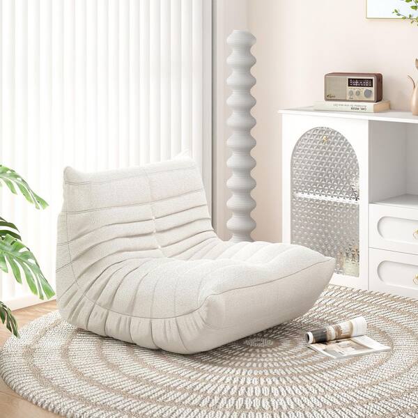 Beige Teddy Velvet Polyester 34 in. Fireside Lazy Sofa Bean Bag Chair Rebound Sponge Lounge Floor Sofa for Apartment