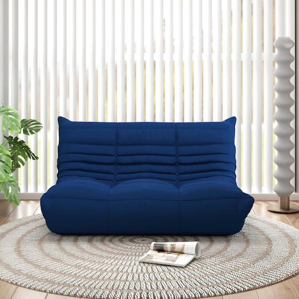 Big Lazy Floor Sofa, 54 in. Blue Teddy Velvet Rectangular 2-Seats Loveseat Fireside Chair with Backrest for Living Room