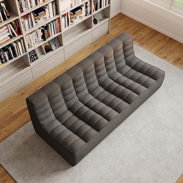 Black Linen Polyester 3-Seater X-Large (Over 72 in. ) Bean Bag Couch Modern Fireside Lazy Floor Sofa Chair for Apartment