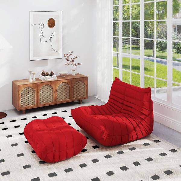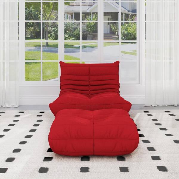 Caterpillar 34 in. Armless Velvet Curved 1-Seater Bean Bag Fireside Floor Sofa for Apartment in Red
