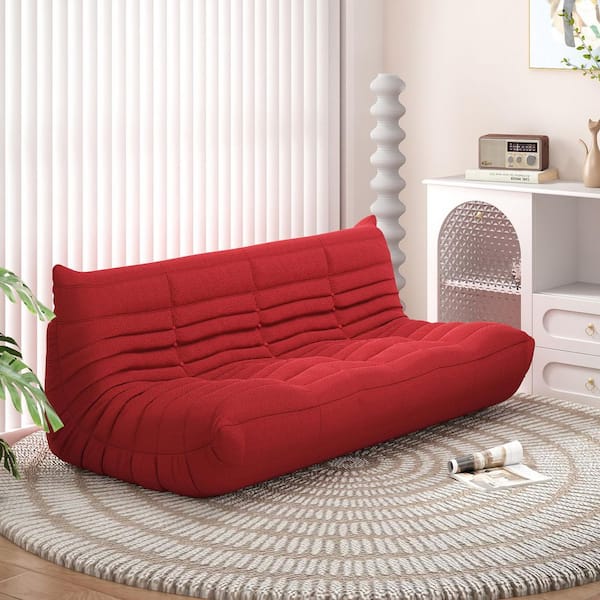 Caterpillar 69 in. Armless Velvet Curved Comfy Lazy Floor Couch Memory Foam Fireside Sofa Corner Chair in. Red