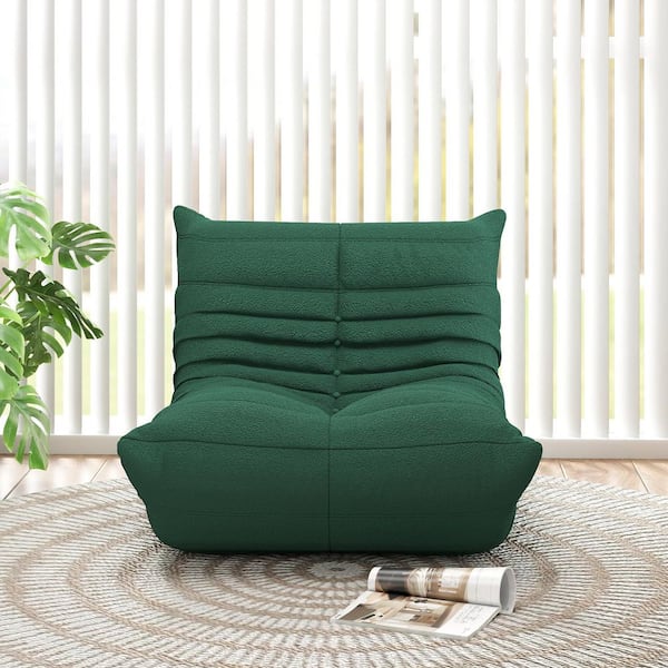 Caterpillar Modern Lazy Sofa, 34 in. Armless Teddy Velvet Memory Foam Curved Rectangle 1-Seat Floor Couch in Green
