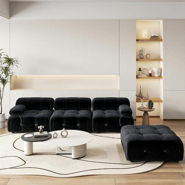 Chameleon 104 in. Square Arm Minimalism 4-Piece Modern Velvet Modular Combination Sectional Sofa with Ottoman in Black