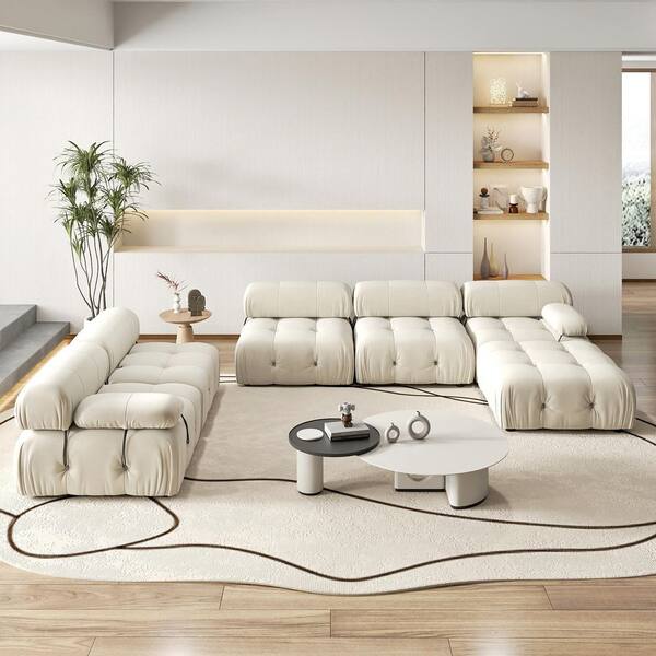 Chameleon 138 in. Square Arm 6-piece Modern Velvet Modular Combination Sectional Sofa Living Room with Ottoman in Beige