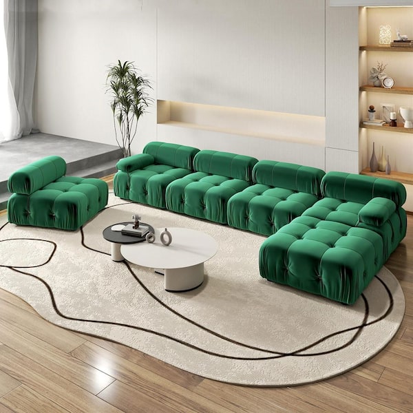 Chameleon 138 in. Square Arm 6-piece Modern Velvet Modular Combination Sectional Sofa Living Room with Ottoman in. Green