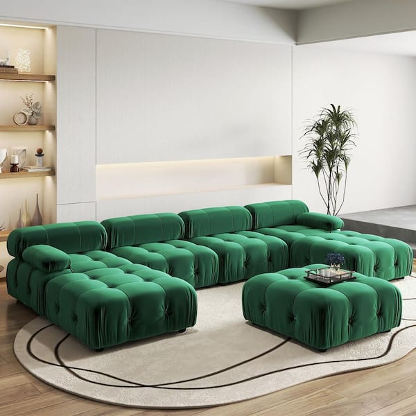 Chameleon 138 in. Square Arm 7-piece Modern Velvet Modular Combination Sectional Sofa Couch with 3 Ottomans in Green