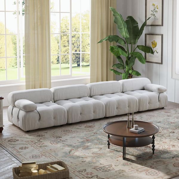 Chameleon 138 in. Square Arm Oversized 4-piece Modern Velvet Modular Combination Sectional Sofa Living Room Set in Beige