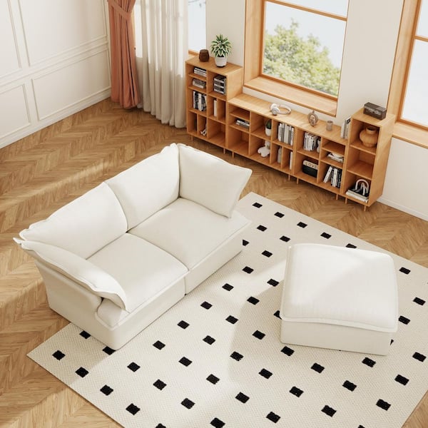 Convertible 83 in. Flared Arm 3-piece Linen Modular Sectional Sofa Modern Love Seat with Ottoman in. White for Apartment