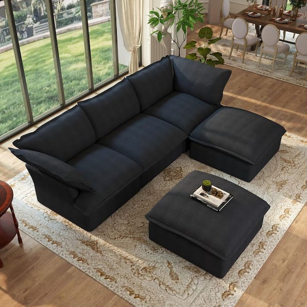 Down Filled 123 in. Flared Arm Oversized 5-piece Linen U-shaped Modular Cloud Sectional Sofa in. Black for Home Office