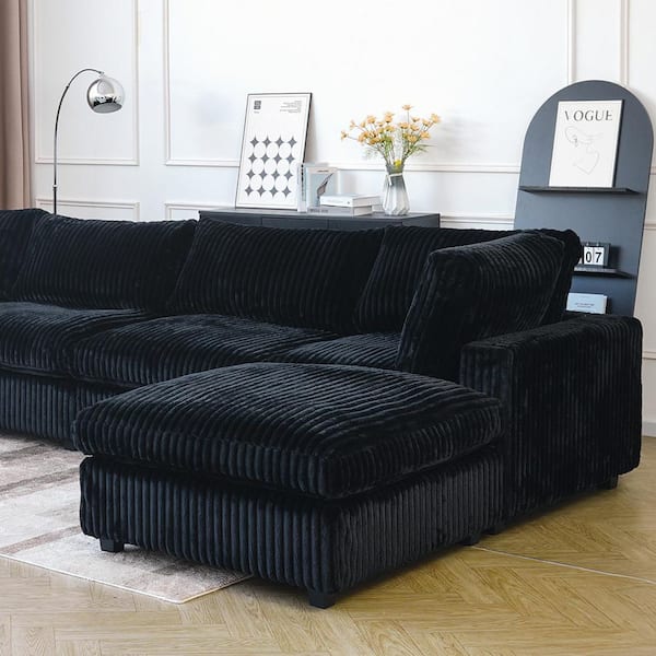 Lawson Cloud Couch 157 in. Square Arm Velvet Solid Wood Modular Convertible Sofa with Ottoman, Washable Covers in. Black