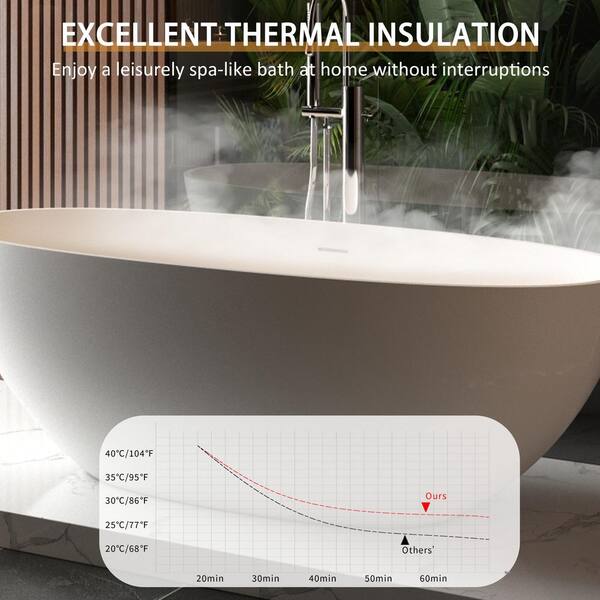 Luxury 65 in. x 30 in. Freestanding Solid Surface Resin Soaking Bathtub with Overflow in Matte White