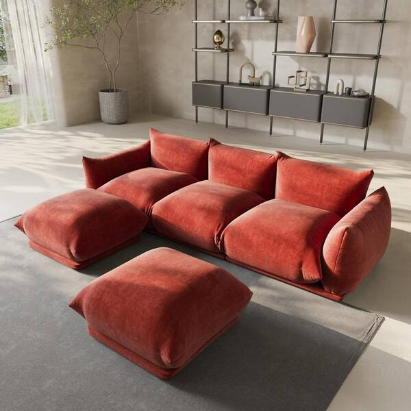 Marenco 104 in. Flared Arm Chenille Lawson U-shaped Modular Sofa Reversible 3-Seat Couch with 2 Ottomans in. Orange