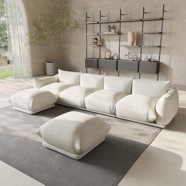 Marenco U-shaped Couch, 131 in. Flared Arm Chenille Lawson Modular Sofa with 2 Ottomans in. Beige for Home Apartment Bar