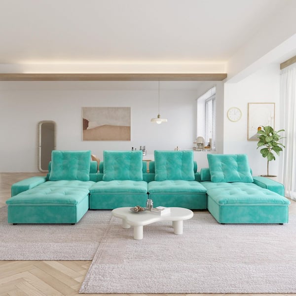 Miami 181 in. Square Arm Oversized 4-Seater Velvet Modular Cloud Sectional Sofa with Adjustable Backrest in Tiffany Blue