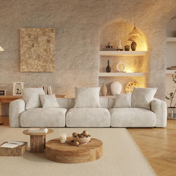Modern 142 in. Square Arm 3-Piece Modular Corduroy Sectional Sofa Oversized Floor Grand Couch for Apartment in Beige