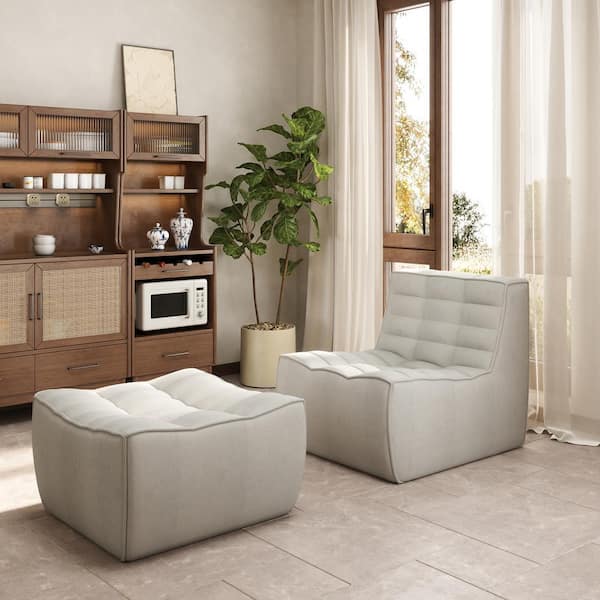 Modern Gray Linen Upholstered Fireside Accent Side Chair (Set of 2) with Ottoman for Reading Living Room, Apartment