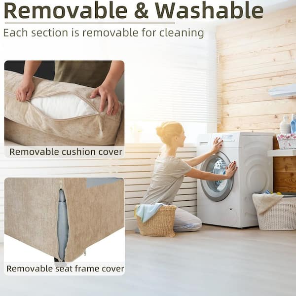 Oversized 134 in. Square Arm Chenille Lawson Modular Sofa with Ottoman and Detachable Coves in. Khaki