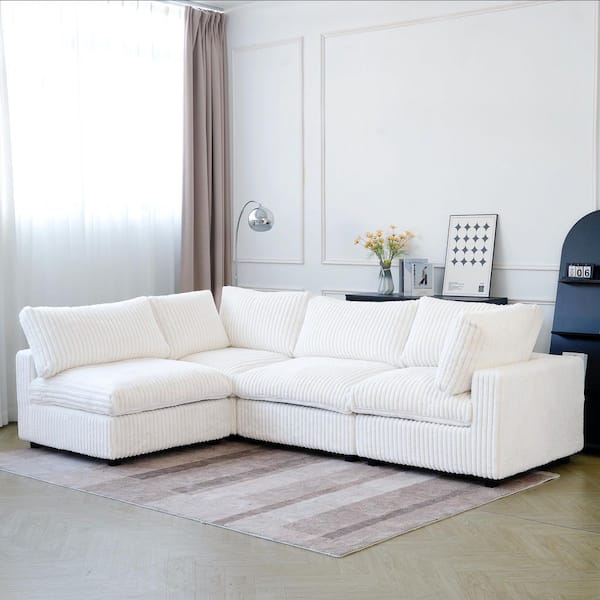 Oversized 157 in. Square Arm Velvet Pine Wood Modular Sofa Lawson Down Filled Cloud Couch with Washable Covers in. White
