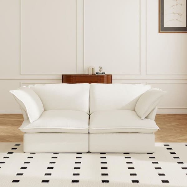 Oversized 83 in. Linen 2-Seater Loveseat Convertible Cloud Couch in White with Washable Covers for Apartment Bedroom