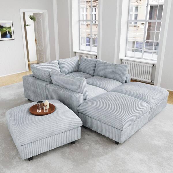 Ovesized Sofa Bed 157 in. Square Arm Velvet Down Filled Solid Wood Modular Sofa Cloud Couch with 3-Ottomans in Gray