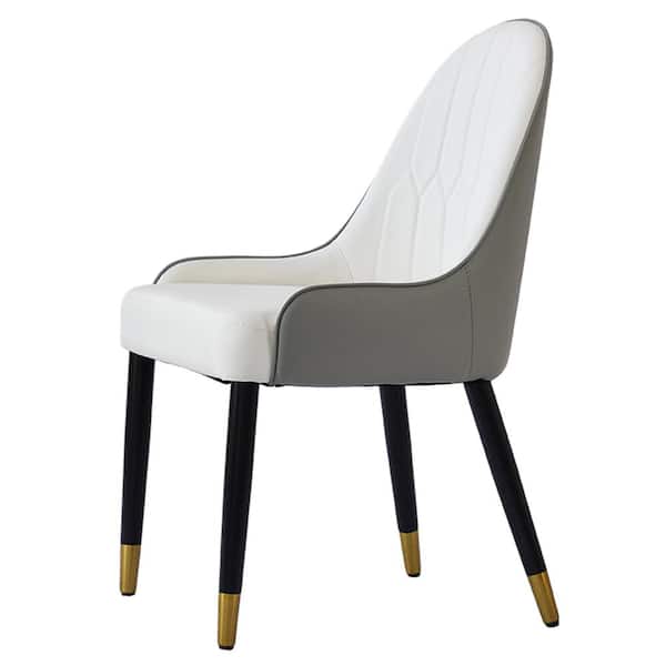 (Set of 2) Ergonomic PU Leather Dining Chair Morden Desk Chair with Solid Wood Metal Legs and Backrest, Gray