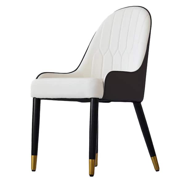 Set of 2 Ergonomic PU Leather Dining Chair Morden Desk Chair with Solid Wood Metal Legs and Backrest, White