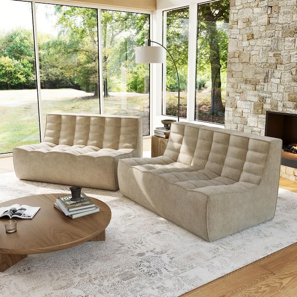 Set of 2 Loveseat Armless 55.1 in. 2 Piece Linen Modular Sectional Sofa 2-Seater Fireside Lazy Floor Sofa Couch in Khaki