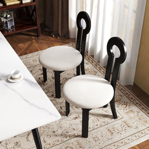 (Set of 2) Modern Lambswool Sitting Cushion Dining Chair Desk Chair Furniture in Black