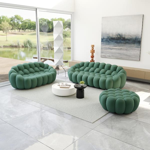 (Set of 3) Bubble Couch, Armless 98 in. Green Mesh Fabric Curved Sectional Sofa Set 3-Seater Couch with Loveseat Ottoman