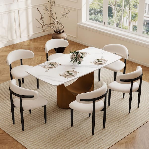 (Set of 6) Modern Lambswool Sitting Cushion Dining Chair in Black