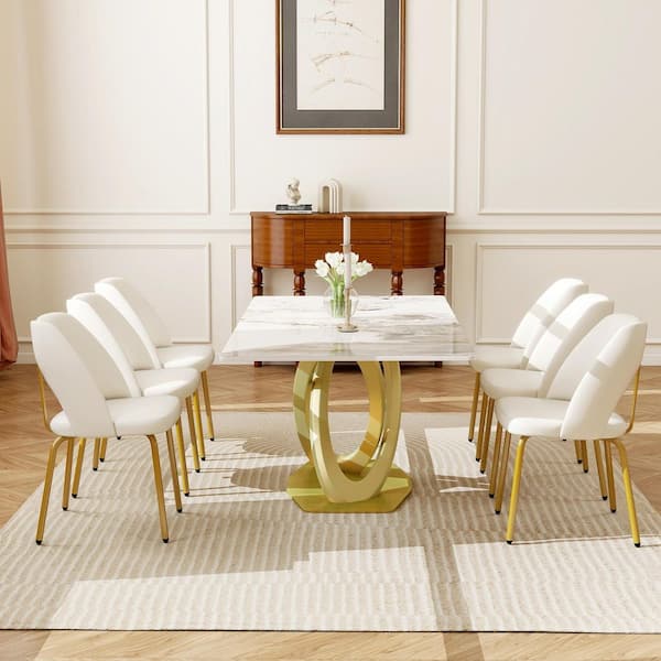 White PU Leather Dining Chairs with Gold Stainless Steel Legs (Set of 6)