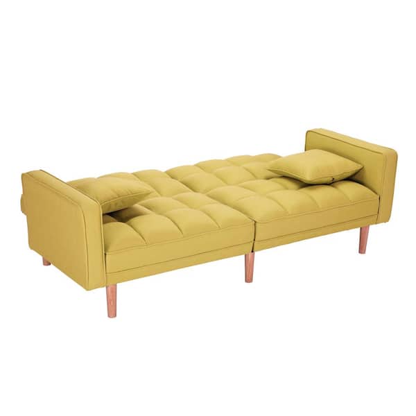 Yellow Futon Twin Size Sleeper Sofa Polyester Loveseats with 2 Pillows