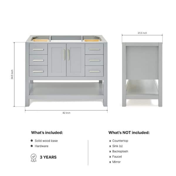 Magnolia 42 in. W x 21.5 in. D x 34.5 in. H Bath Vanity Cabinet without Top in Gray