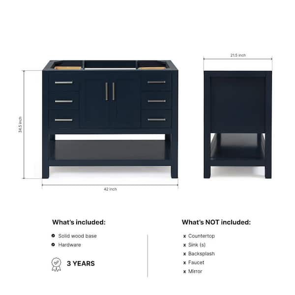 Magnolia 42 in. W x 21.5 in. D x 34.5 in. H Bath Vanity Cabinet without Top in Midnight Blue