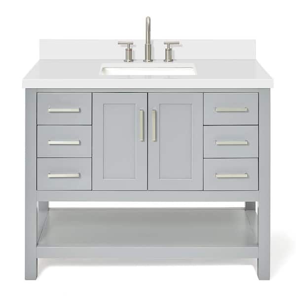 Magnolia 42 in. W x 22 in. D x 36 in. H Bath Vanity in Gray with Pure Quartz Vanity Top in White with White Basin