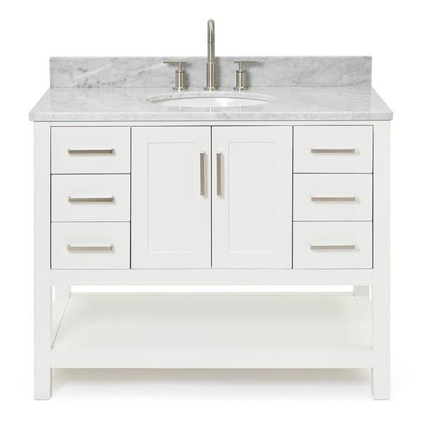 Magnolia 42 in. W x 22 in. D x 36 in. H Bath Vanity in White with Carrara Marble Vanity Top in White with White Basin