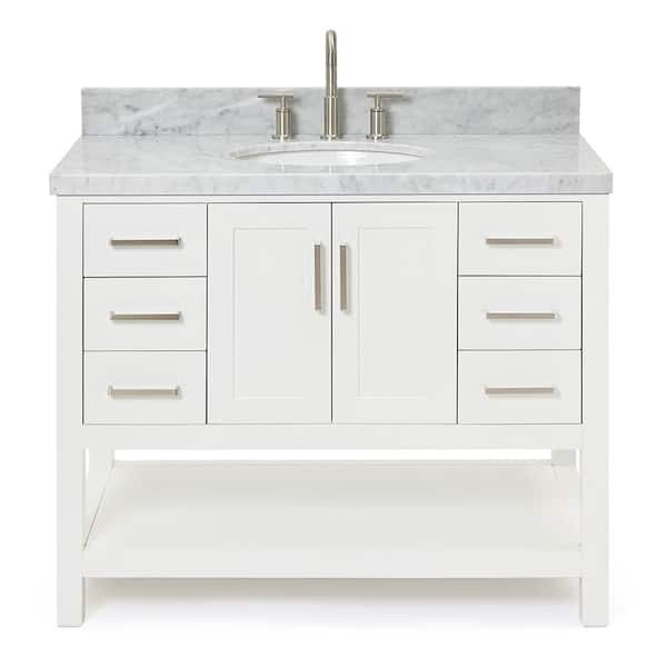 Magnolia 42 in. W x 22 in. D x 36 in. H Bath Vanity in White with Carrara Marble Vanity Top in White with White Basin