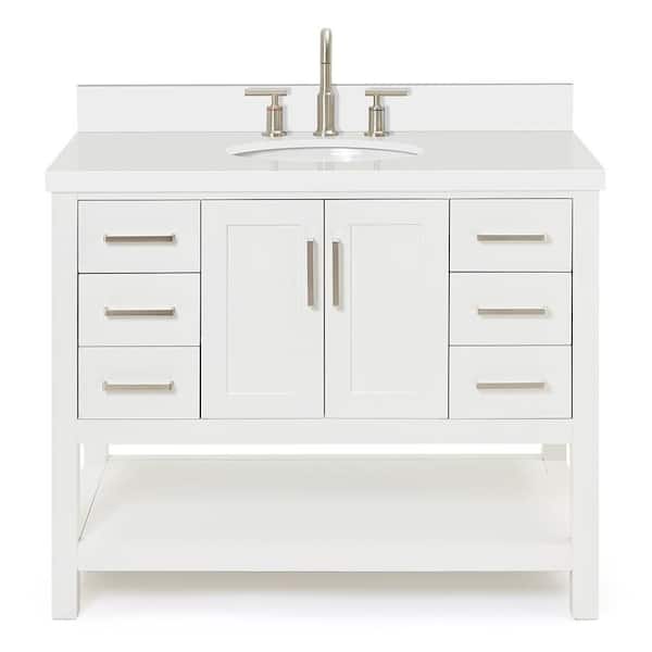Magnolia 42 in. W x 22 in. D x 36 in. H Bath Vanity in White with Pure Quartz Vanity Top in White with White Basin