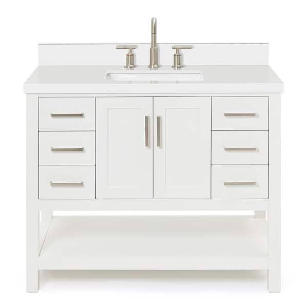 Magnolia 42 in. W x 22 in. D x 36 in. H Bath Vanity in White with Pure Quartz Vanity Top in White with White Basin