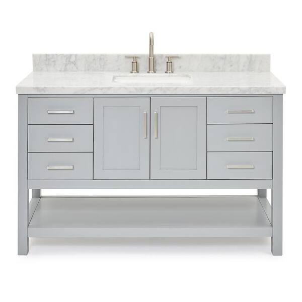 Magnolia 54 in. W x 22 in. D x 36 in. H Bath Vanity in Gray with Carrara Marble Vanity Top in White with White Basin