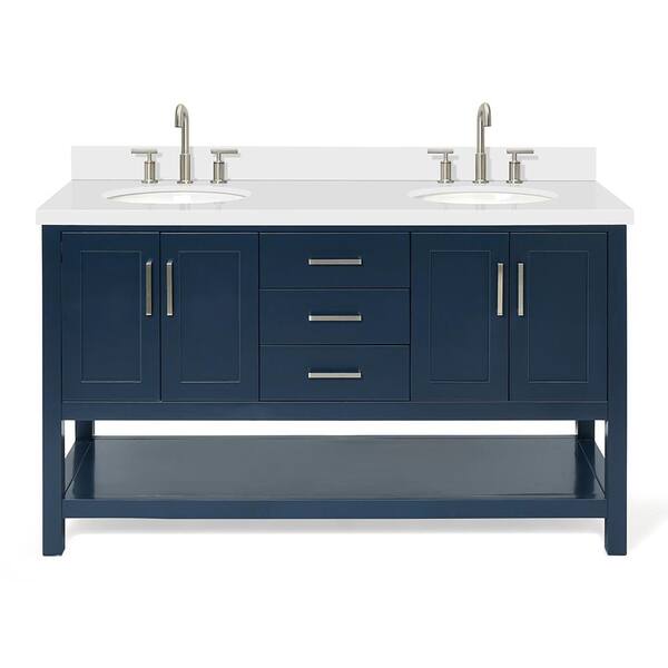 Magnolia 60 in. W x 22 in. D x 36 in. H Bath Vanity in Blue with Pure Quartz Vanity Top in White with White Basins
