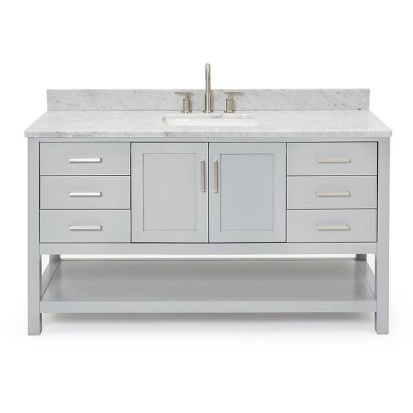 Magnolia 60 in. W x 22 in. D x 36 in. H Bath Vanity in Gray with White Carrara Marble Vanity Top with White Basin