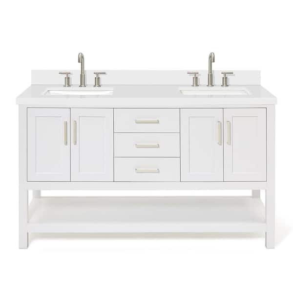 Magnolia 60 in. W x 22 in. D x 36 in. H Bath Vanity in White with Pure Quartz Vanity Top in White with White Basins